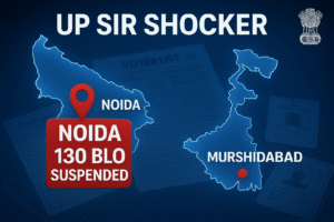 This article breaks down everything in simple language—why 130 BLOs were suspended in Noida, what the new SIR rules mean, why Bengal’s situation is being discussed, and how the issue of name changes has added a major twist.